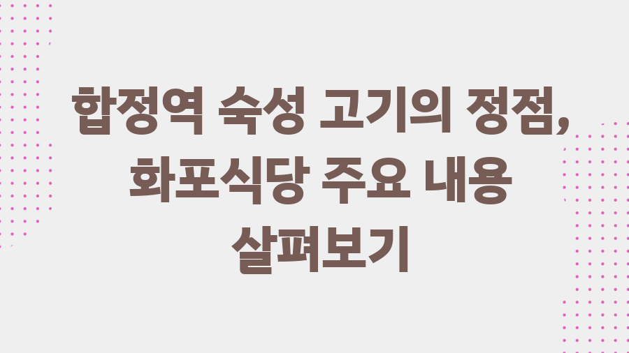합정역 숙성 고기의 정점, 화포식당 주요 내용 살펴보기
